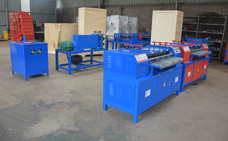 采用物理干式分離法,散熱器分解機(jī)銅管鋁箔分離速度快、工效高,操作簡便、容易維護(hù);
